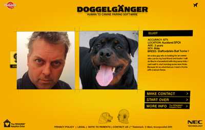 In reality, it was a clever marketing stunt from a New Zealand animal shelter. I suspect they displaying random dog images and assuming users would imagine some similarity to the human photo.